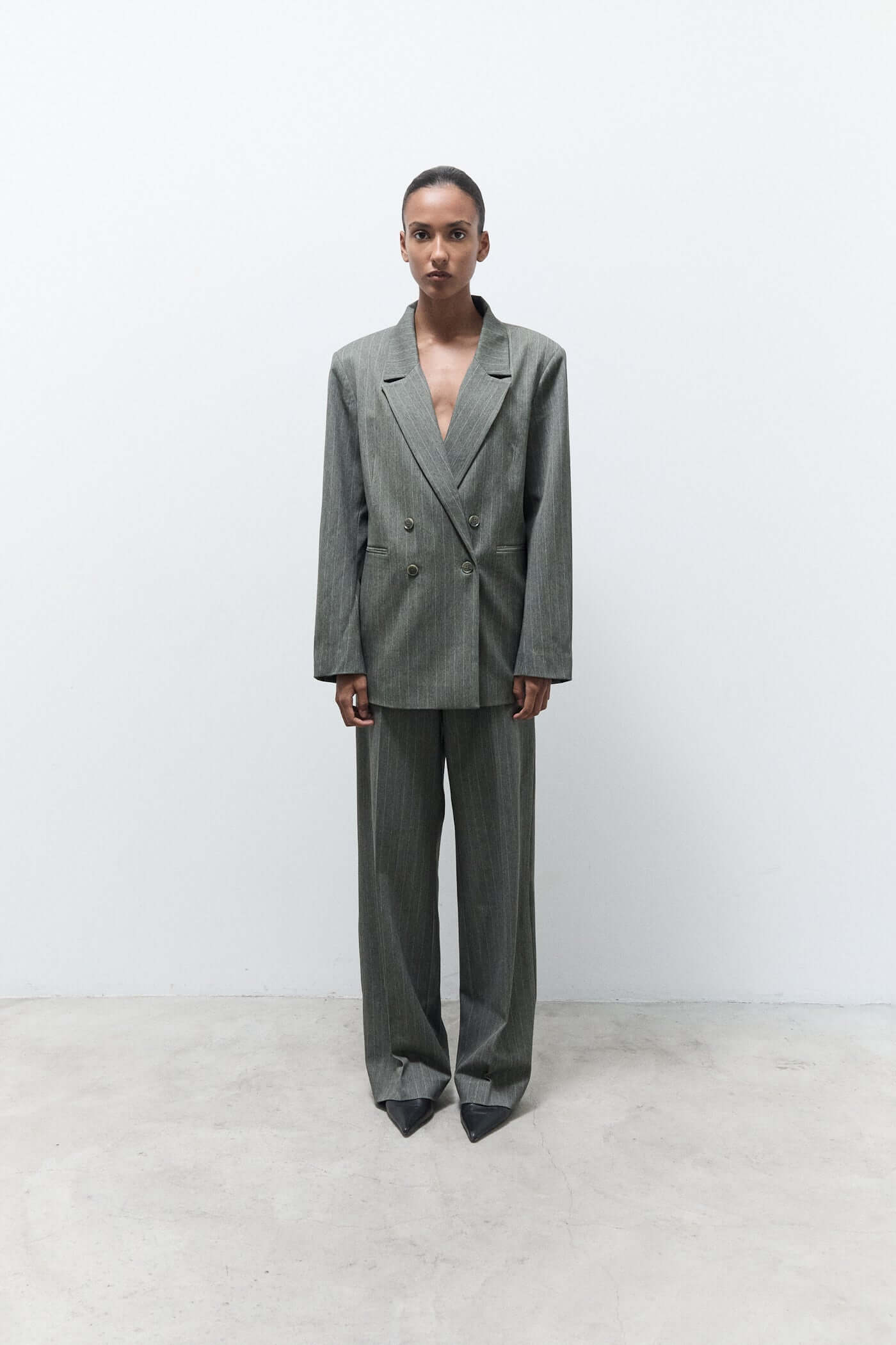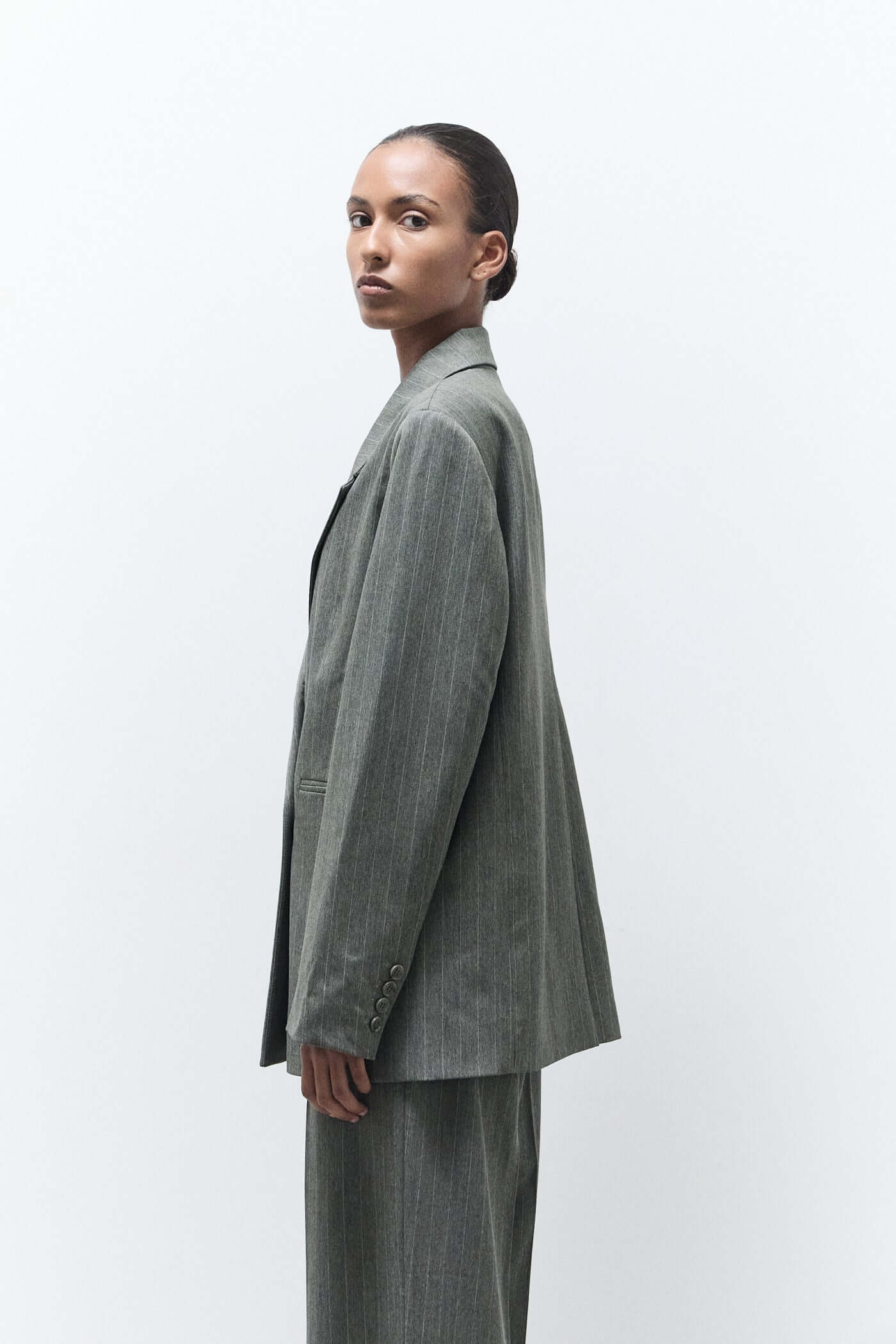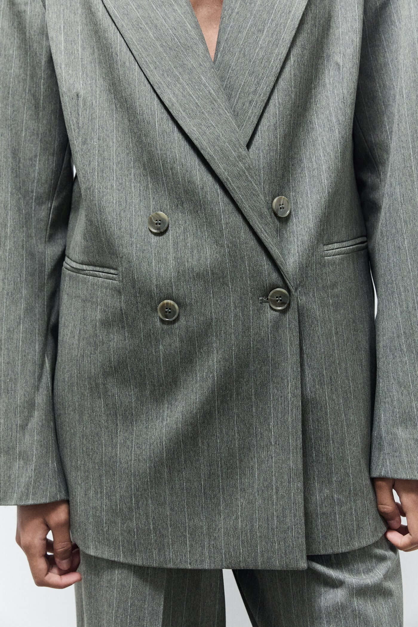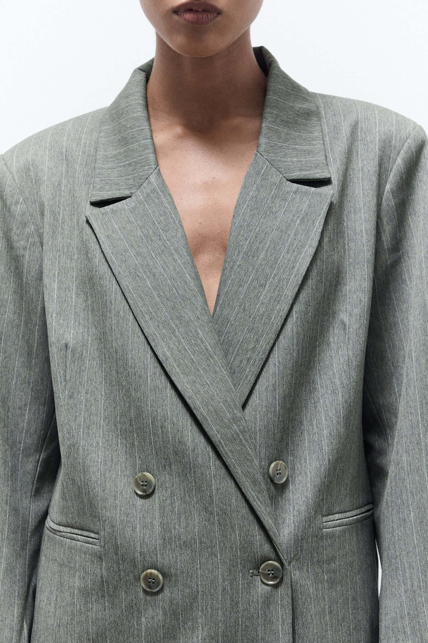 Classic with a confident edge — the Indy blazer green pinstripes is a double-breasted essential in a timeless pinstripe pattern. With its sharp tailoring, structured shoulders, and flattering fit, it brings polish to any look. Crafted from a soft yet structured fabric with a touch of stretch, it’s perfect for both workdays and weekends. Style it over denim, trousers, or throw it on over a dress for instant sophistication.