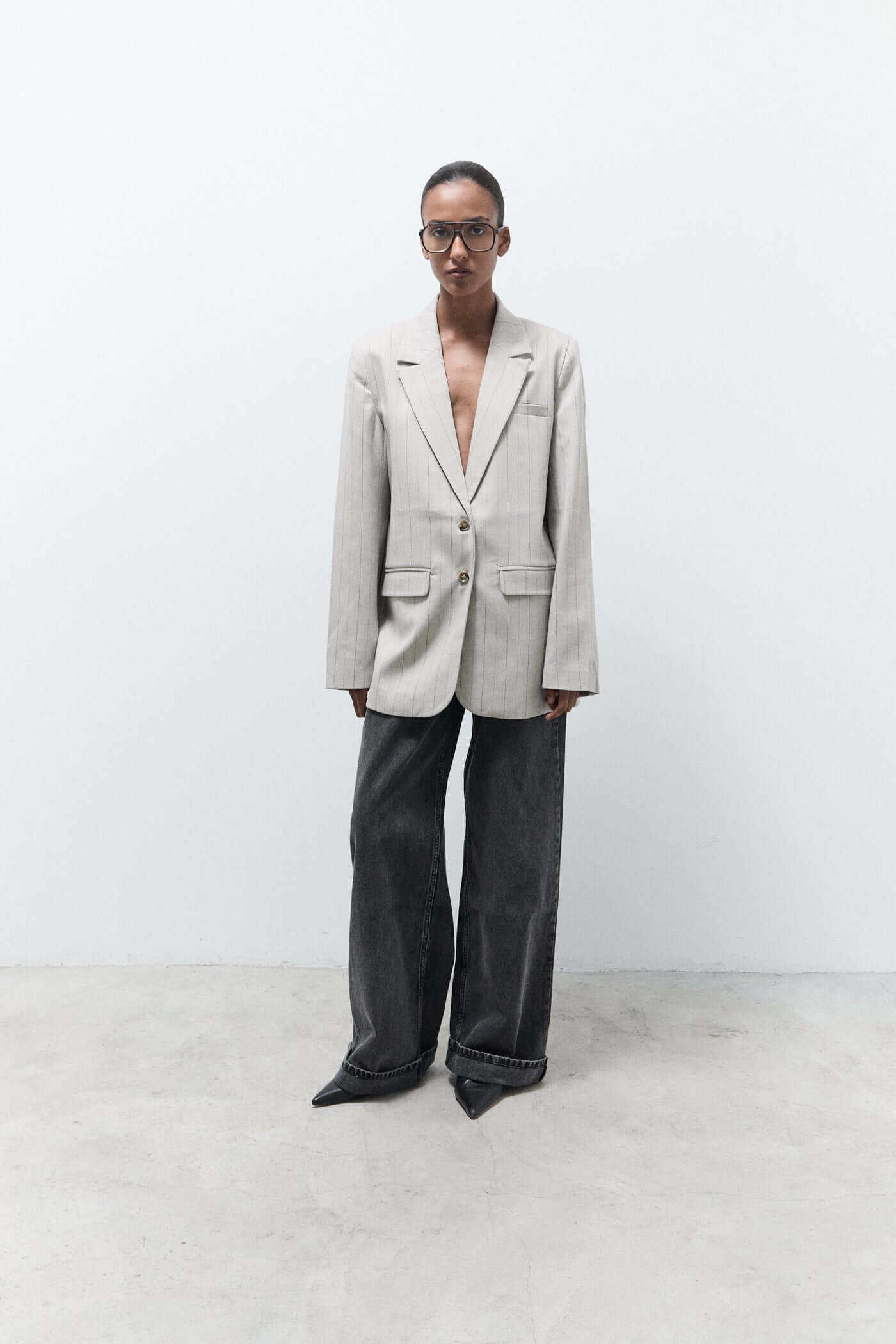 MILLIE BLAZER | Beige pinstripes